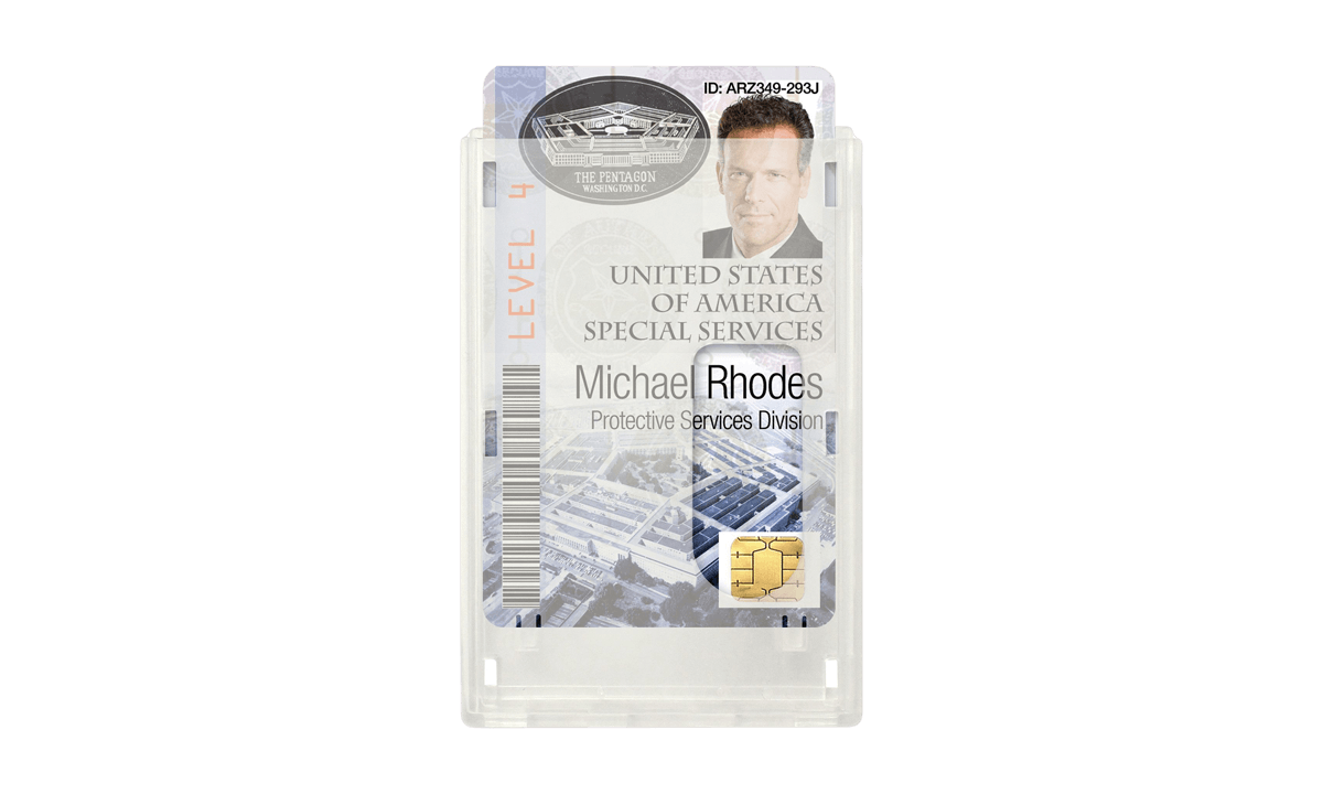 Made of durable, fire-retardant polycarbonate. UV protection prevents print fading for less frequent card replacement. Frosty finish hides scratches and eliminates glare. Back slot allows easy attachment to lanyard or badge-reel with strap.