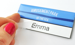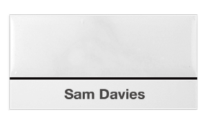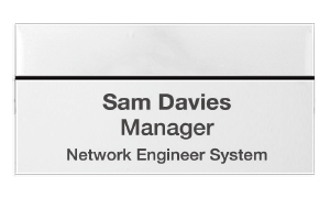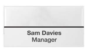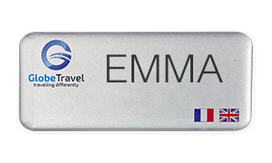 Choose from one of the widest ranges of permanent or reusable name badges in UK. Browse through our range, personalise your orders as from a single piece with our online designer! Several fasteners are possible: tie clips, magnets, pins and many others available on request.